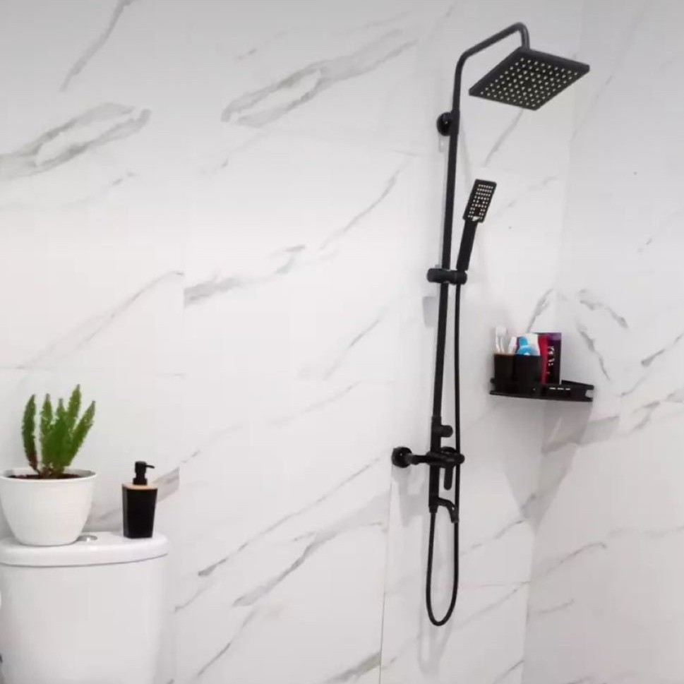 مجموعة عمود دش اليد والرأس سيينا أسود غير لامع على شكل رأس مربع تصميم فاخر مع حامل انابيب وخرطوم معدني وحامل صابون وملحقات تركيب